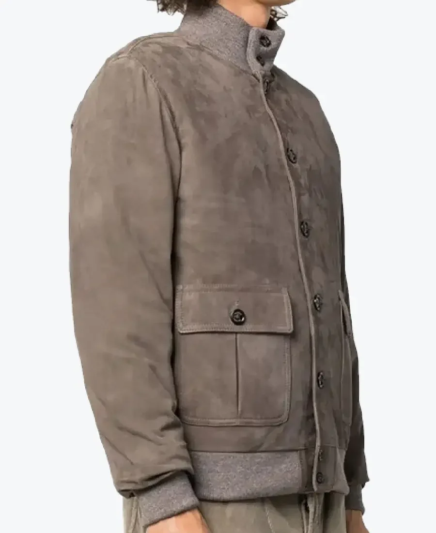 Shop The Rare Jackets Ray Men’s Light Grey A-1 Bomber Suede Jacket