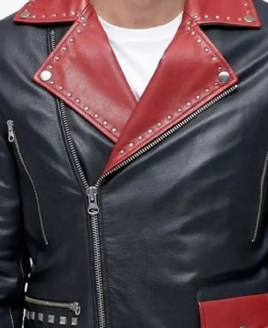 Red Studded Lapels Biker Jacket