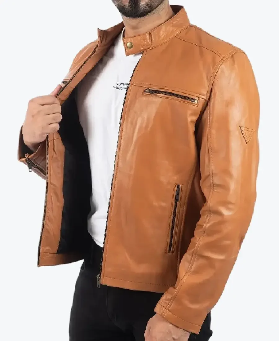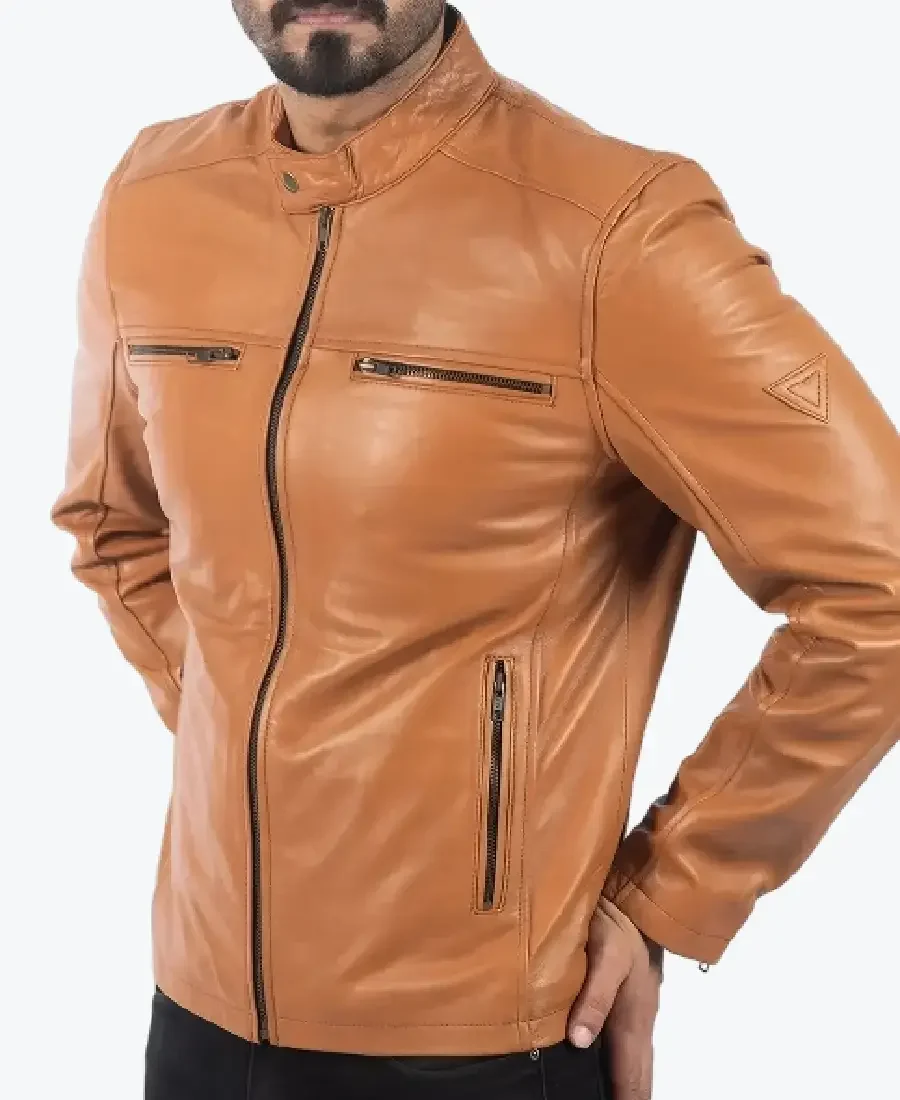 The Ricky Men’s Tan Biker Leather Jacket by Rare Jackets is a masterclass in vibrant urban aesthetics and high-performance utility, meticulously handcrafted from premium cowhide leather (also available in high-grade faux leather). Drenched in a warm, commanding tan brown, this piece leverages the leather’s high-grade grain and natural wind-resistant properties to provide a formidable protective shell. The material is selected for its industrial-grade durability and smooth, luxurious finish, ensuring the jacket maintains a sharp, authoritative frame while projecting a bold, contemporary energy. Inside, the garment is fully lined with a silky viscose lining, providing a breathable and friction-free experience for maximum all-day comfort.