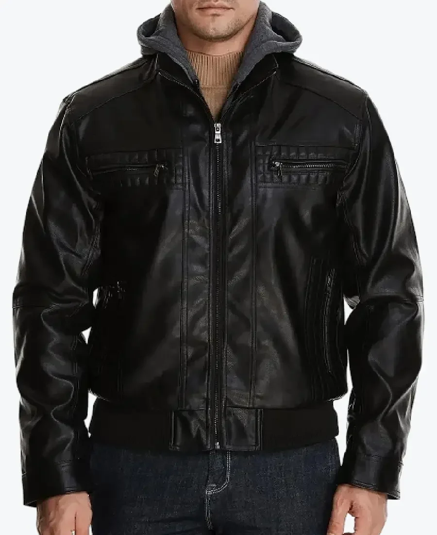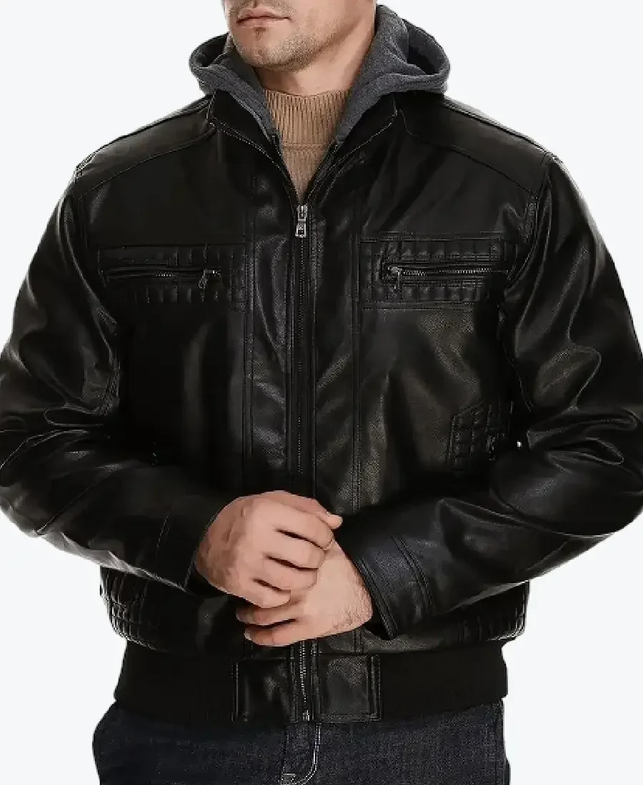 The architecture of this jacket is defined by its clean waist-length silhouette and an iconic “hybrid-bomber” aesthetic. It features a versatile dual-layer front with a high-performance central zipper closure and a removable heather grey textile hood with adjustable drawstrings, allowing for an effortless transition from a rugged street-style look to a sharp, stand-up collar leather profile. To ensure superior heat retention and a custom look at the extremities, the full-length sleeves and wide-waist hemline are finished with high-impact rib-knitted cuffs and a matching waistband, while the expert quilted shoulder paneling and reinforced vertical seam-work create a sophisticated architectural volume. Designed for the individual who demands maximum organized utility within a polished frame, this Rare Jackets essential features a strategic six-pocket configuration—including two horizontal zipper chest pockets, two discreet side-entry pockets, and two hidden inner pockets—offering secure storage while reinforcing the jacket’s sleek, high-impact silhouette.