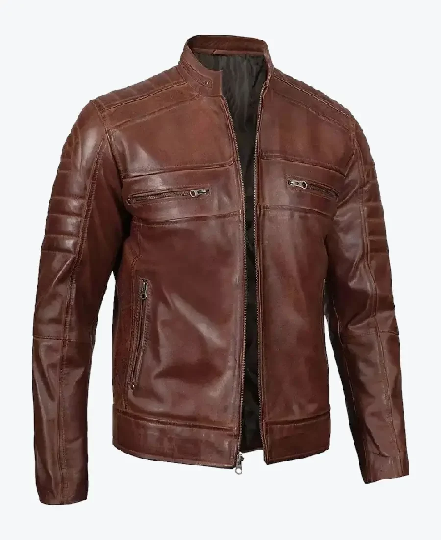 The architecture of this jacket is defined by its clean, aerodynamic lines and iconic horizontal quilted detailing on the shoulders and sleeves. It features a contemporary stand-up collar with a secure snap-button finish, providing a streamlined and secure frame to the neckline that exudes a bold, racer-inspired energy. The front is anchored by a high-performance zipper closure, maintaining a precision profile that transitions seamlessly from professional environments to open-road adventures. To ensure a custom fit and a tapered look at the wrists, the full-length sleeves are finished with high-performance zipper cuffs. Designed for the individual who demands maximum organized utility, this Rare Jackets essential features an expansive six-pocket configuration, including four front pockets (with signature horizontal chest zips) and two hidden inner pockets, offering unparalleled security for your gear while reinforcing the jacket’s powerful, architectural silhouette.
