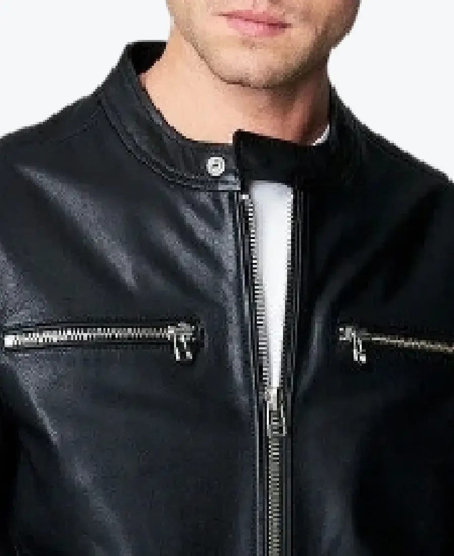 The architecture of this jacket is defined by its clean, aerodynamic lines and iconic racer-inspired silhouette. It features a contemporary erect collar with a polished snap-tab closure, providing a streamlined and secure frame to the neckline that exudes a bold, authoritative aesthetic. The front is anchored by a high-performance centered zipper closure, maintaining a precision slim-fit profile that transitions seamlessly from professional environments to evening social settings. To ensure a custom fit and a polished finish at the wrists, the full-length sleeves are finished with adjustable snap-button cuffs. Designed for the individual who demands maximum organized utility within a sleek frame, this Rare Jackets essential features a strategic six-pocket configuration, including four front zip pockets (two horizontal chest zips and two vertical side pockets) and two hidden inner pockets, offering secure storage while reinforcing the jacket’s powerful, architectural silhouette.