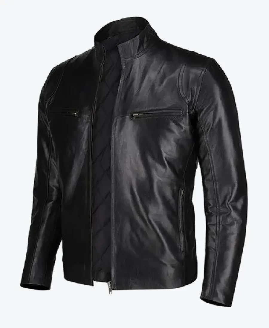 Slim Fit Black Leather Jacket For Men