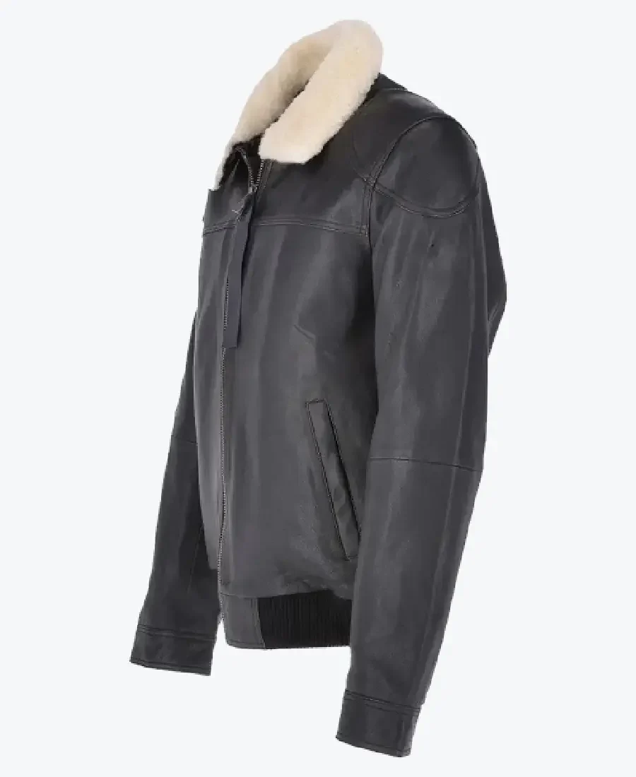 The architecture of this jacket is defined by its clean waist-length silhouette and an iconic “winter-bomber” aesthetic. It features a sharp turn-down collar integrated with high-impact cream faux shearling fur, providing a structured and powerful frame to the neckline that exudes a classic professional vibe with a contemporary urban twist. The front is anchored by a high-performance silver-tone zipper closure with an extended leather puller, maintaining a precision tailored-fit profile that emphasizes the unique horizontal chest-yoke paneling and expert raglan-inspired shoulder construction. To ensure a custom look and a streamlined drape at the extremities, the full-length sleeves are finished with clean snap-tab cuffs, while the wide-waist rib-knitted hemline creates a sophisticated architectural volume. Designed for the individual who demands maximum artistic flair within a polished frame, this Rare Jackets essential features a strategic four-pocket configuration—including two discreet side-entry welt pockets and two hidden inner pockets—offering secure storage while reinforcing the jacket’s sleek, high-impact silhouette.