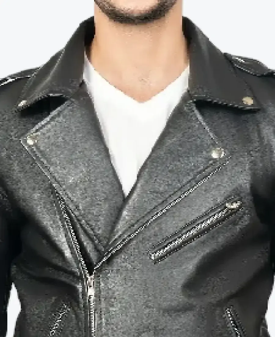 The architecture of this jacket is defined by its iconic asymmetrical lines and heavy-duty industrial detailing. It features a sophisticated lapel style collar with polished snap-down accents and military-inspired epaulets on the shoulders, lending a structured and rebellious frame to the neckline. The front is anchored by a precision asymmetrical zipper closure, complemented by a strategic belted waist that allows for a personalized, architectural fit. To ensure a custom fit and a tapered look at the wrists, the full-length sleeves are finished with high-performance zipper cuffs. Designed for the individual who demands organized utility within a bold aesthetic, this Rare Jackets essential features a strategic five-pocket configuration, including three front zip pockets (with a signature slanted chest zip and a mini flap coin pocket) and two hidden inner pockets, offering secure storage while reinforcing the jacket’s powerful, architectural silhouette.