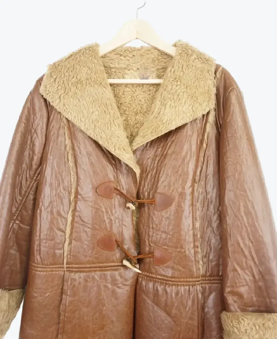 The Vintage Faux Leather Afghan Coat by Rare Jackets is a masterclass in nostalgic 1970s aesthetic and precision urban luxury meticulously handcrafted from premium cowhide leather or high grade faux leather. Drenched in a commanding and earthy cognac brown this piece leverages a robust grain and natural wind resistant properties to provide a formidable protective shell. The hide is selected for its industrial grade durability and a sophisticated crinkled vintage finish ensuring the coat maintains a sharp authoritative frame while projecting a raw bohemian energy. Inside the garment is fully integrated with a plush high density sherpa lining providing unparalleled warmth and a high comfort experience for the most demanding climates.