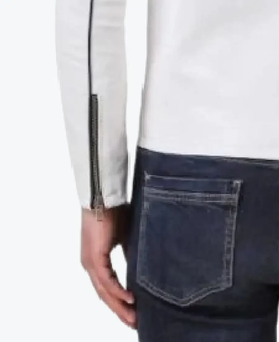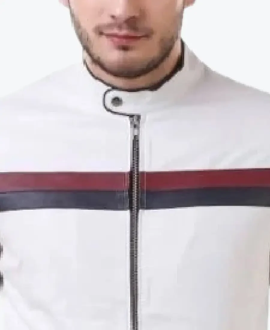 The White Sky Cafe Racer Striped Jacket by Rare Jackets is a masterclass in high-definition urban architecture and precision luxury meticulously handcrafted from premium cowhide leather or high-grade faux leather. Drenched in a commanding and timeless arctic ivory, this piece leverages a robust high-grade grain and natural wind-resistant properties to provide a formidable protective shell for the modern landscape. The leather is selected for its industrial-grade durability and a sophisticated semi-gloss liquid finish, ensuring the jacket maintains a sharp authoritative frame while projecting a raw, high-fashion energy. Inside, the garment is fully integrated with a silky viscose lining, providing a breathable and friction-free experience for maximum all-day comfort.