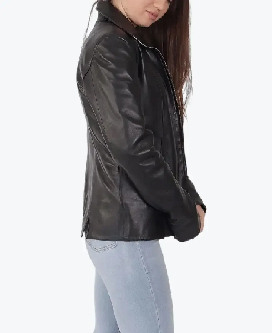 The architecture of this jacket is defined by its clean extended-length silhouette and an iconic “slouchy-chic” aesthetic. It features a sharp stand-up collar providing a structured and powerful frame to the neckline that exudes a classic professional vibe with a contemporary urban twist. The front is anchored by a high-performance silver-tone zipper closure, maintaining a precision tailored-fit profile that allows for effortless layering over black crop tops and high-waisted light-wash denim. To ensure a natural and streamlined drape at the extremities, the full-length sleeves are finished with clean open hem cuffs, while the expert dropped-shoulder construction and reinforced hemline create a sophisticated architectural volume. Designed for the individual who demands maximum artistic flair within a polished frame, this Rare Jackets essential features a strategic pocket configuration including two discreet side-entry pockets offering secure storage while reinforcing the jacket’s sleek, high-impact silhouette.