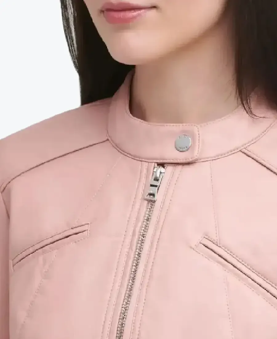 Shop The Rare Jackets Women Light Pink Cafe Racer Leather Jacket