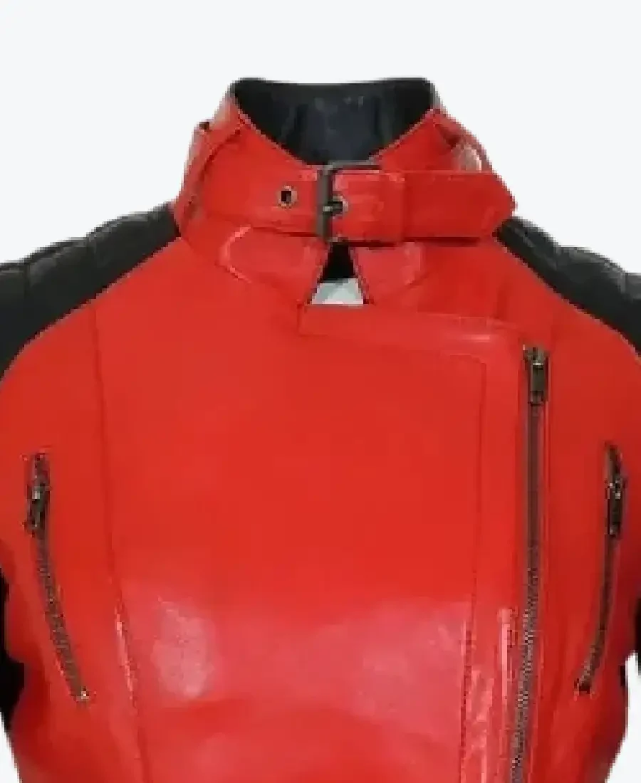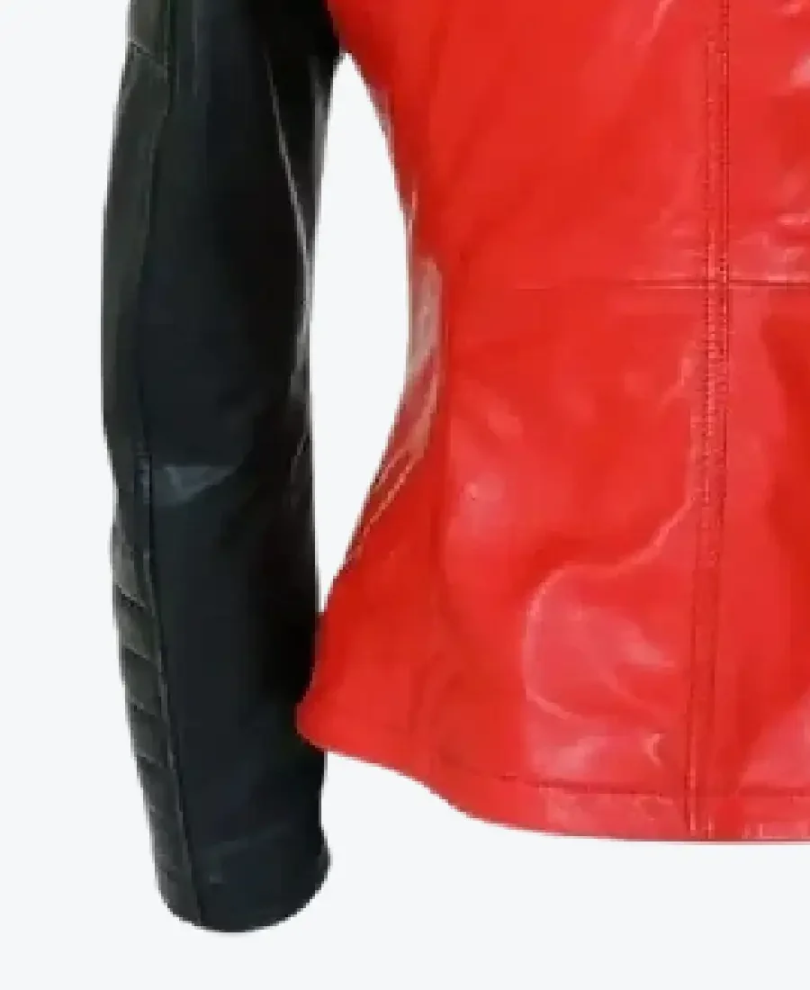 Women Red And Black Leather Biker Jacket