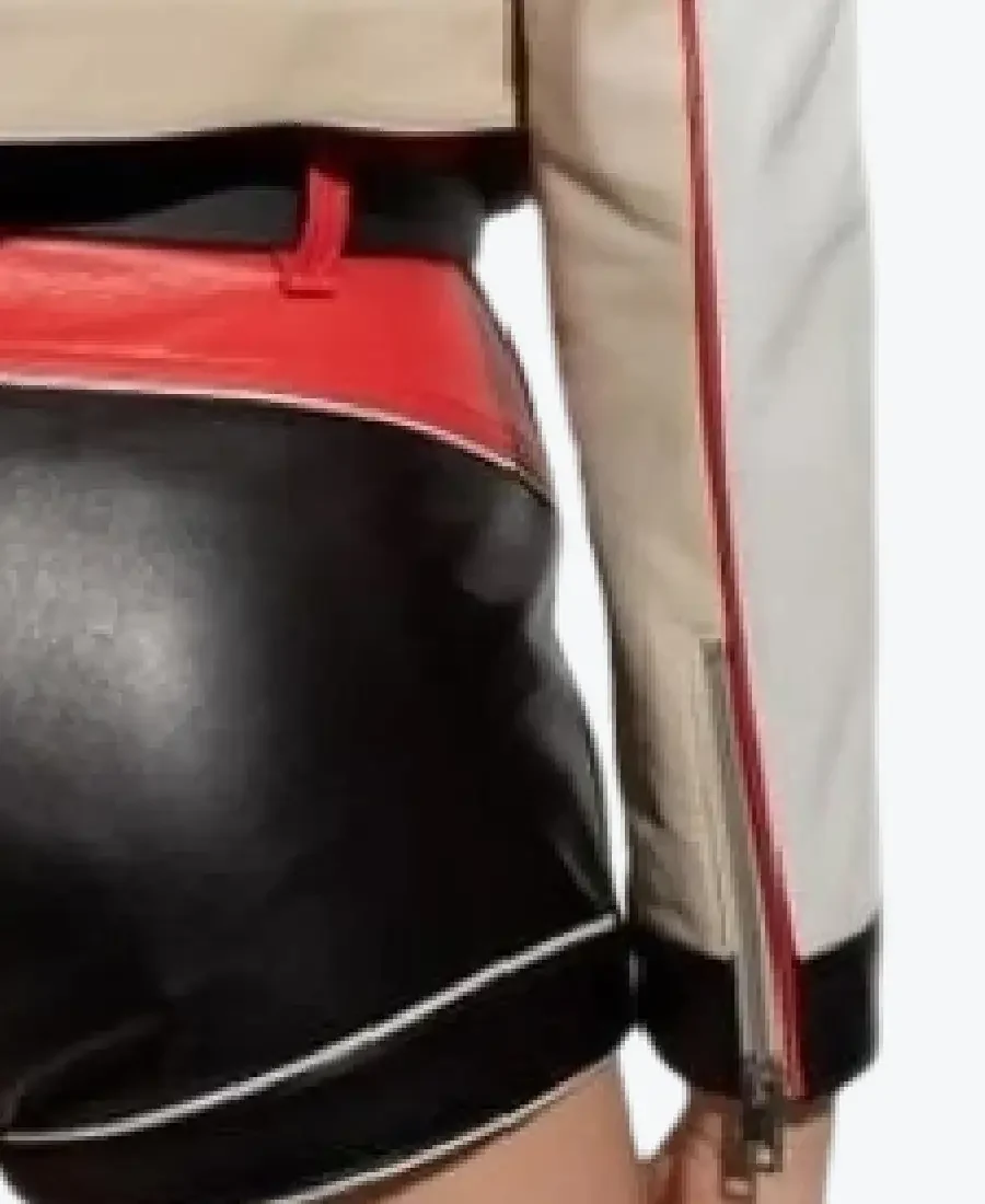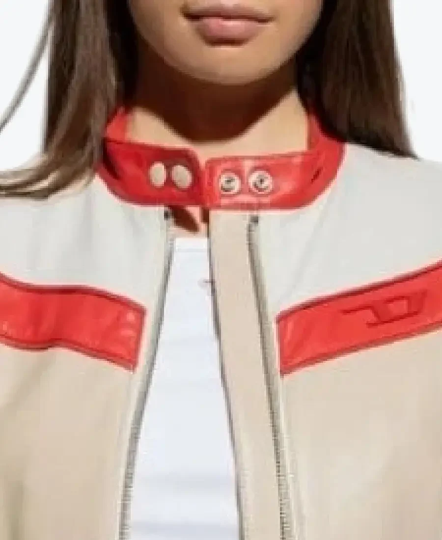 The architecture of this jacket is defined by its clean waist-length cropped lines and an iconic cafe-racer aesthetic. It features a contemporary erect snap-tab collar providing a structured and powerful frame to the neckline that exudes a classic professional racing vibe. The front is anchored by a high-performance silver zipper closure maintaining a precision tailored fit profile that allows for effortless daily wear over white tanks or high-waisted leather shorts. To ensure a natural and streamlined drape at the extremities the full-length sleeves are finished with clean open hem cuffs while the torso is detailed with striking horizontal and vertical red stripes for structural depth and speed-inspired flair. Designed for the individual who demands maximum organized utility within a polished frame this Rare Jackets essential features a strategic pocket configuration including two vertical side pockets and hidden inner storage offering secure utility while reinforcing the jacket’s sleek high-impact silhouette.