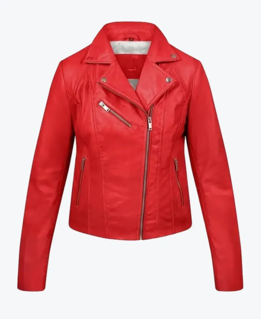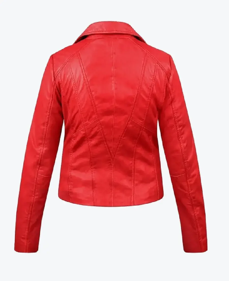 Women Yvonne Red Leather Biker Jacket