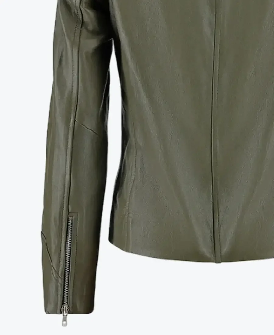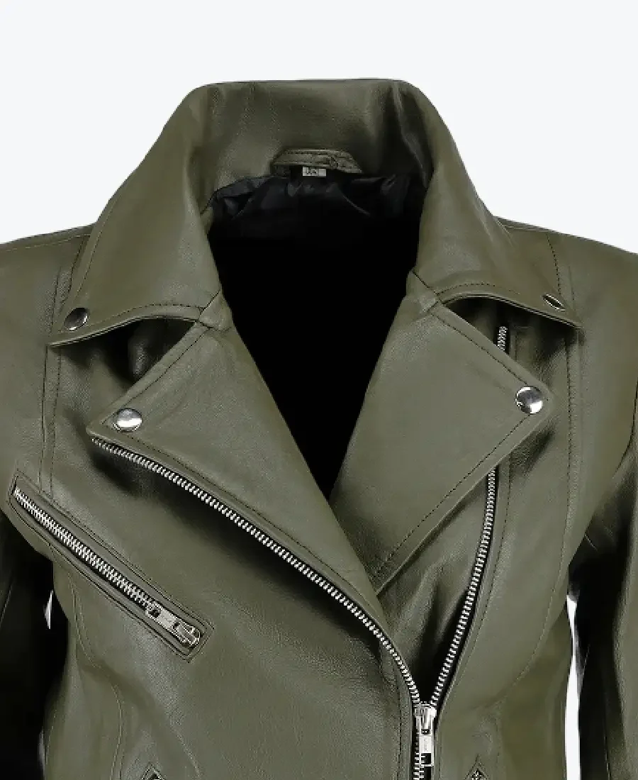 Women’s Asymmetrical Green Leather Motorcycle Jacket