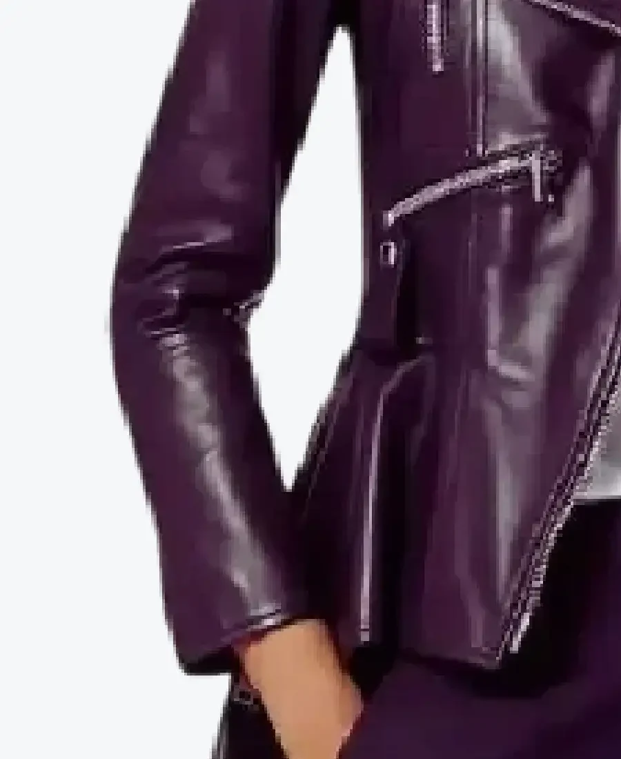 Women’s Asymmetrical Peplum Purple Leather Jacket