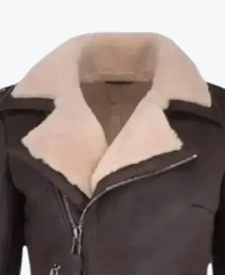 The jacket’s signature is its asymmetrical zipped closure, which creates a dynamic, diagonal line across the torso for a sharp, architectural look. When unzipped, the lapel-style collar drapes beautifully to frame the neck, revealing a smooth Fur that ensures the jacket feels as good on the inside as it looks on the outside.