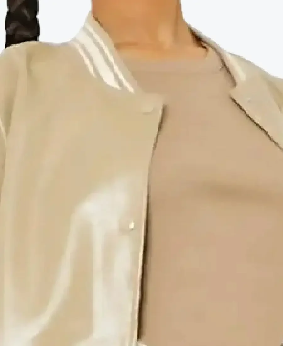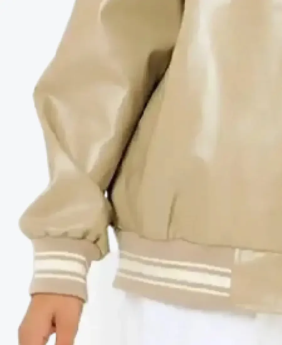 Shop The Rare Jackets Women’s Beige Leather Varsity Jacket