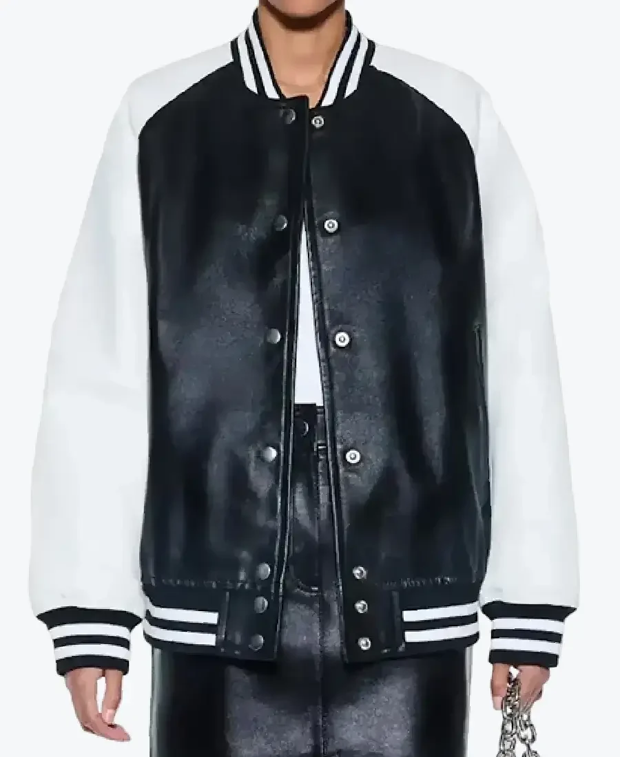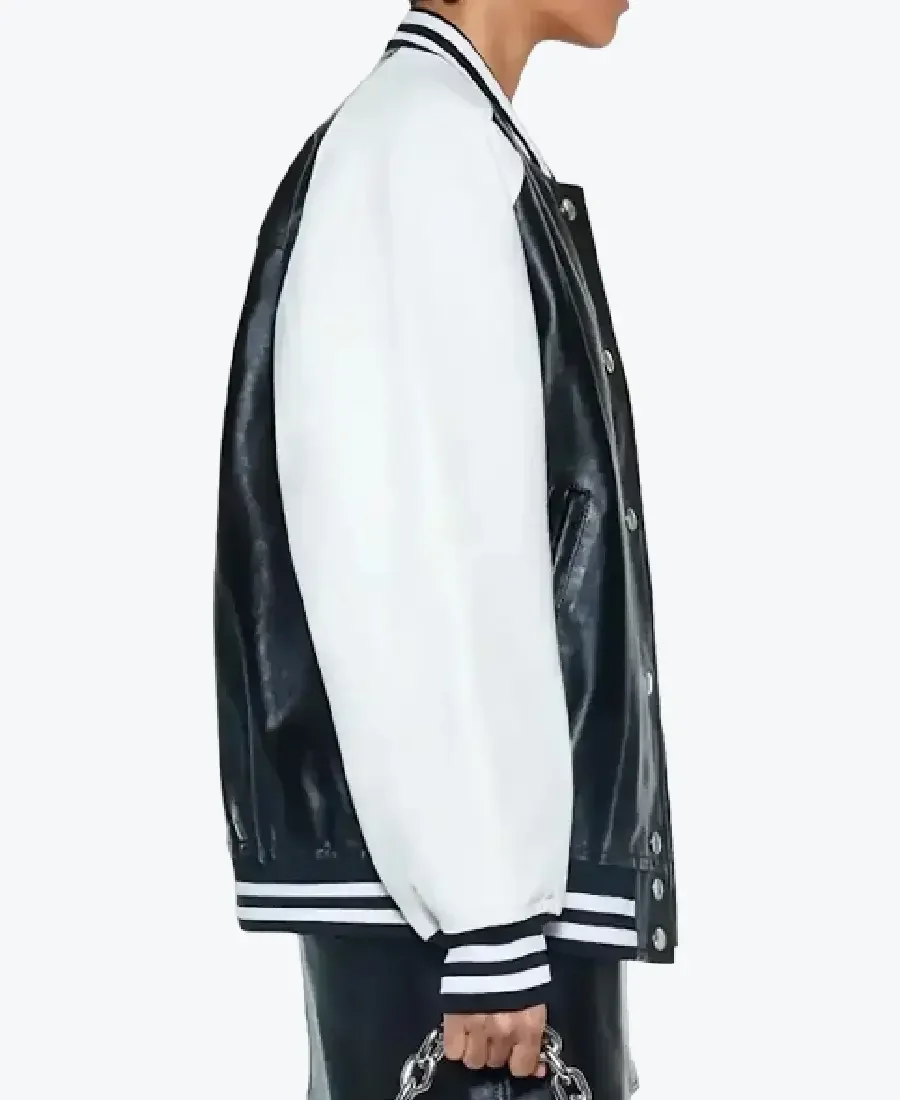 Shop The Rare Jackets Women’s Black and White Varsity Leather Jacket