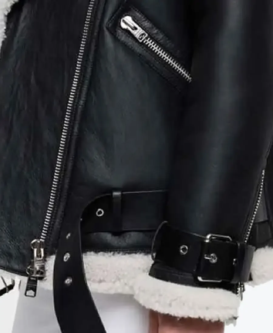 The architecture of this jacket is defined by its clean waist-length lines and an iconic asymmetrical moto-biker aesthetic. It features a bold oversized lapel style collar fully lined with white shearling providing a textured and powerful frame to the neckline that offers superior soft-touch comfort. The front is anchored by a high-performance heavy-duty silver zipper closure complemented by an integrated matching leather waist belt with a high-impact buckle for an architectural cinch. To ensure a custom fit at the extremities the full-length sleeves are finished with unique belted cuffs while the hemline features exposed white shearling trim for added structural depth. Designed for the individual who demands maximum organized utility within a polished frame this Rare Jackets essential features a strategic pocket configuration including two diagonal side zipper pockets and a hidden inner pocket offering secure storage while reinforcing the jacket’s sleek high-impact silhouette.