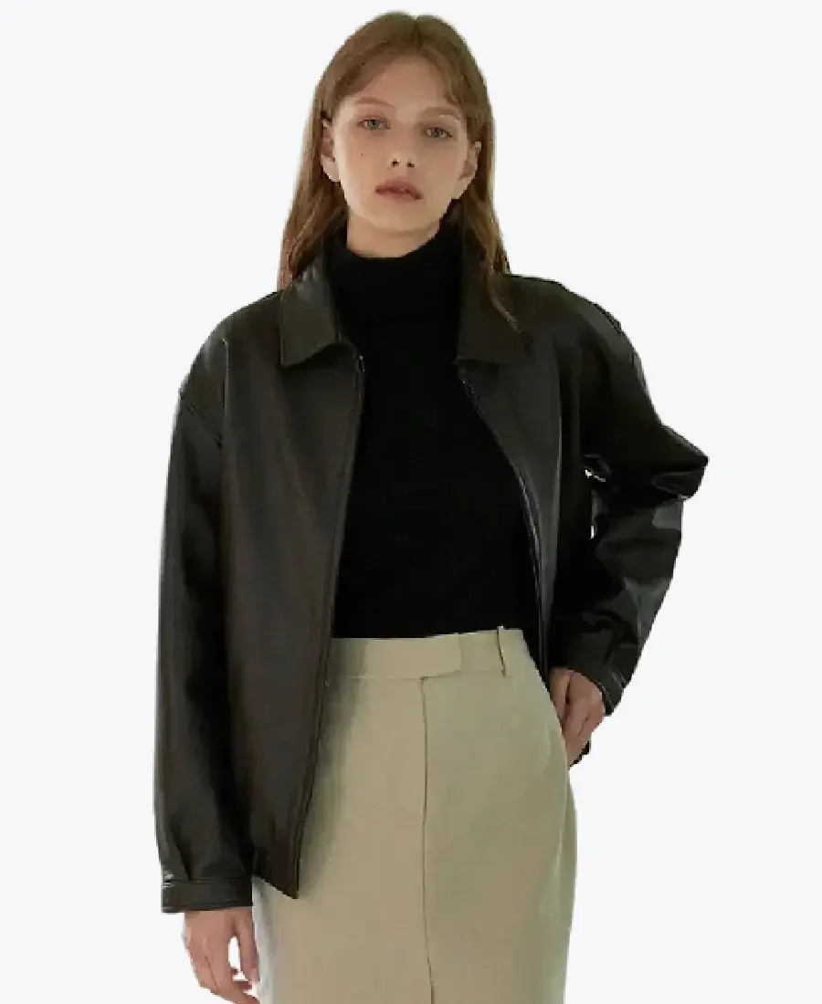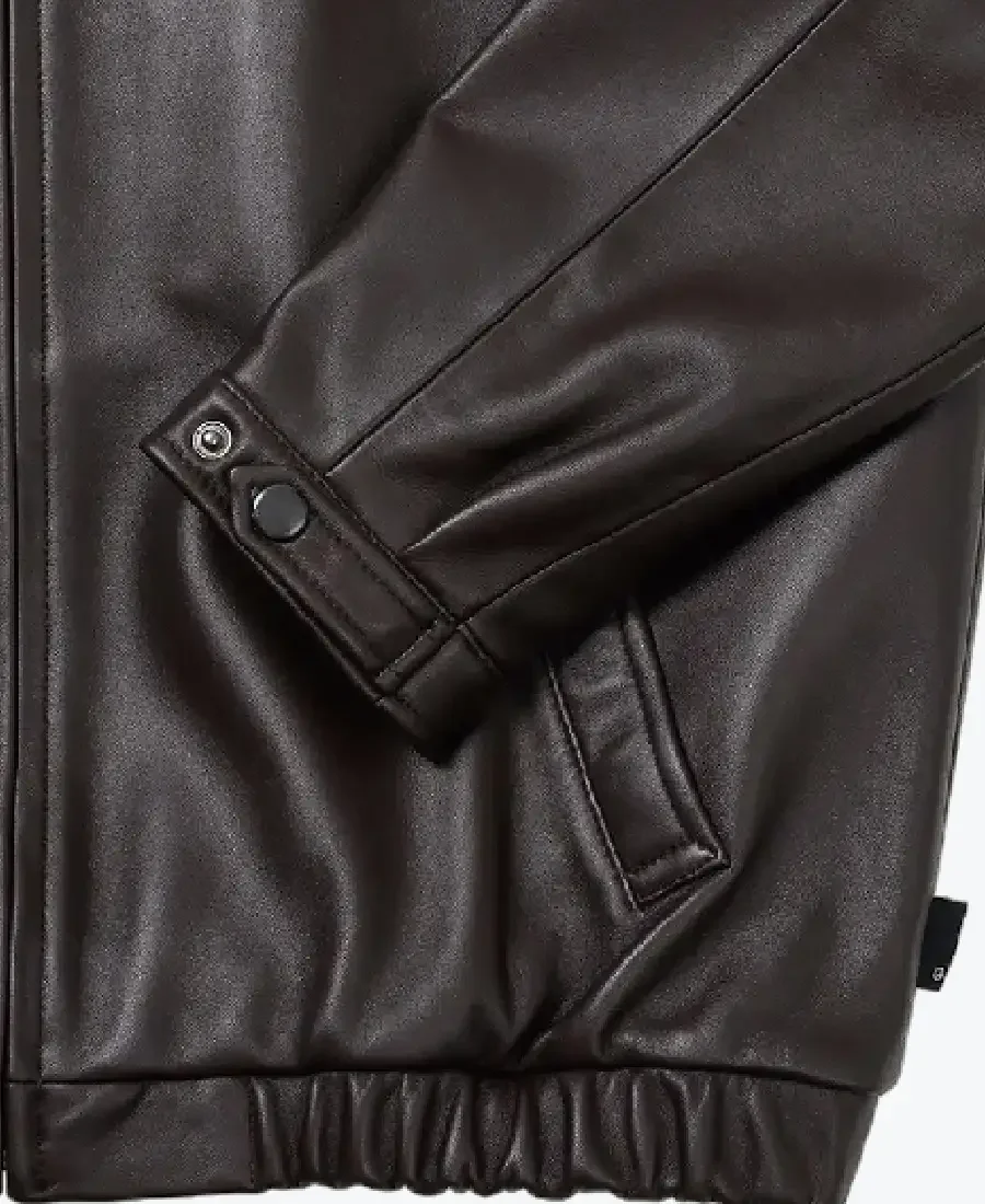 The architecture of this jacket is defined by its clean waist-length silhouette and an iconic minimalist-bomber aesthetic. It features a sharp shirt-style leather collar providing a structured and powerful frame to the neckline that exudes a classic professional vibe with a contemporary urban twist. The front is anchored by a high-performance tonal zipper closure, maintaining a precision tailored-fit profile that allows for effortless layering. To ensure a custom look and a streamlined drape at the extremities, the full-length sleeves are finished with precision snap-button cuffs, while the expert elasticated leather waistband and dropped-shoulder construction create a sophisticated architectural volume. Designed for the individual who demands maximum organized utility within a polished frame, this Rare Jackets essential features a strategic pocket configuration—including two external slanted welt waist pockets and a hidden inner pocket—offering secure storage while reinforcing the jacket’s sleek, high-impact silhouette.