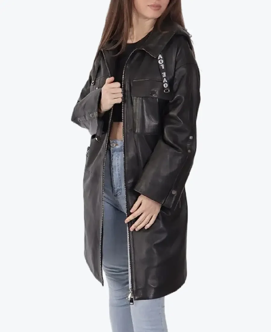 Shop The Rare Jackets Women’s Black Love Leather Coat with Hood