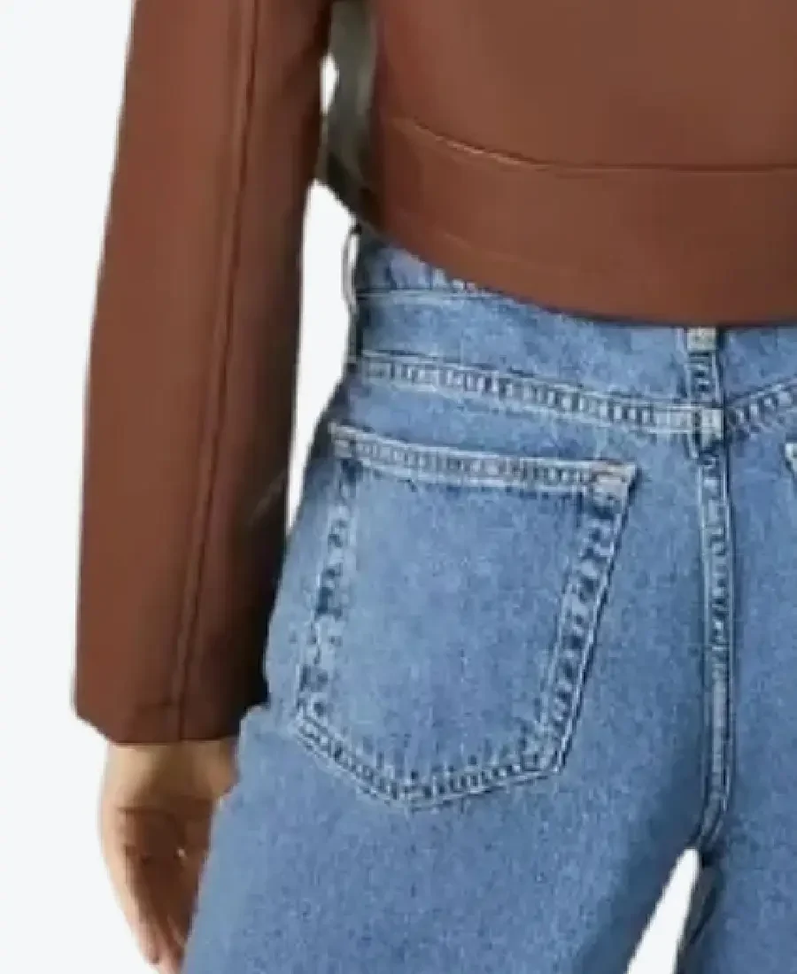 Women’s Brown Cropped Motorcycle Leather Jacket