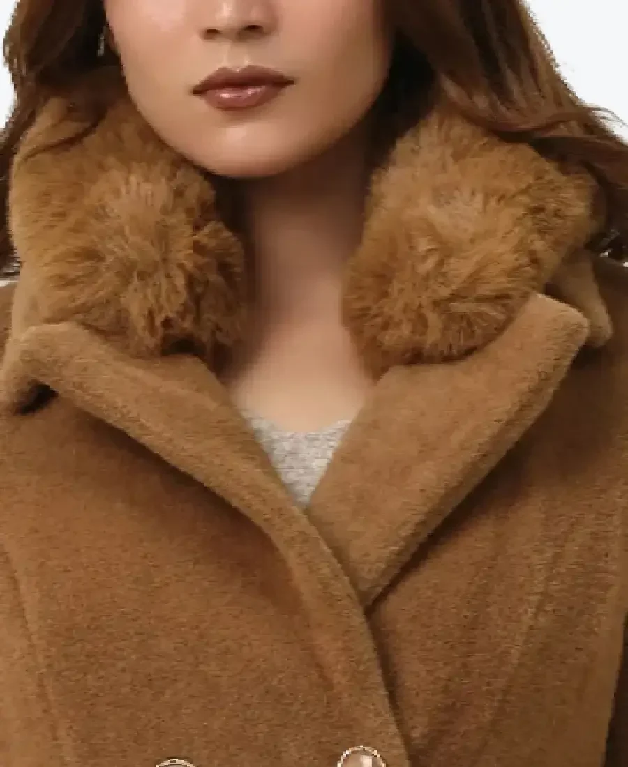 The architecture of this coat is defined by its clean mid-length silhouette and an iconic double-breasted aesthetic. It features a bold oversized lapel collar with a plush tonal faux fur trim providing a textured and powerful frame to the neckline that offers superior soft-touch protection and a touch of Hollywood glamour. The front is anchored by a precision double-breasted button closure featuring four high-impact hardware accents maintaining a precision tailored fit profile that allows for effortless layering over seasonal knits. To ensure a custom look at the extremities the full-length sleeves are finished with unique buttoned wrist straps while the tailored paneling throughout the torso creates a sophisticated cinched-waist effect. Designed for the individual who demands maximum organized utility within a polished frame this Rare Jackets essential features a strategic pocket configuration including two deep side-entry welt pockets for secure storage while reinforcing the coat’s sleek high-impact silhouette.