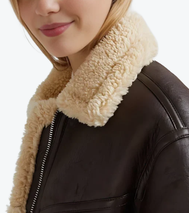 Shop The Women’s Brown Shearling Leather Bomber Jacket
