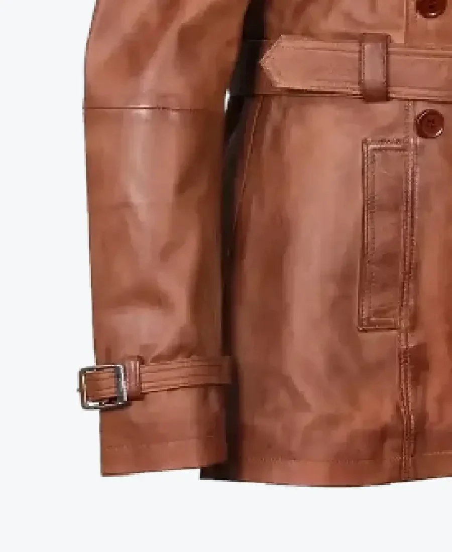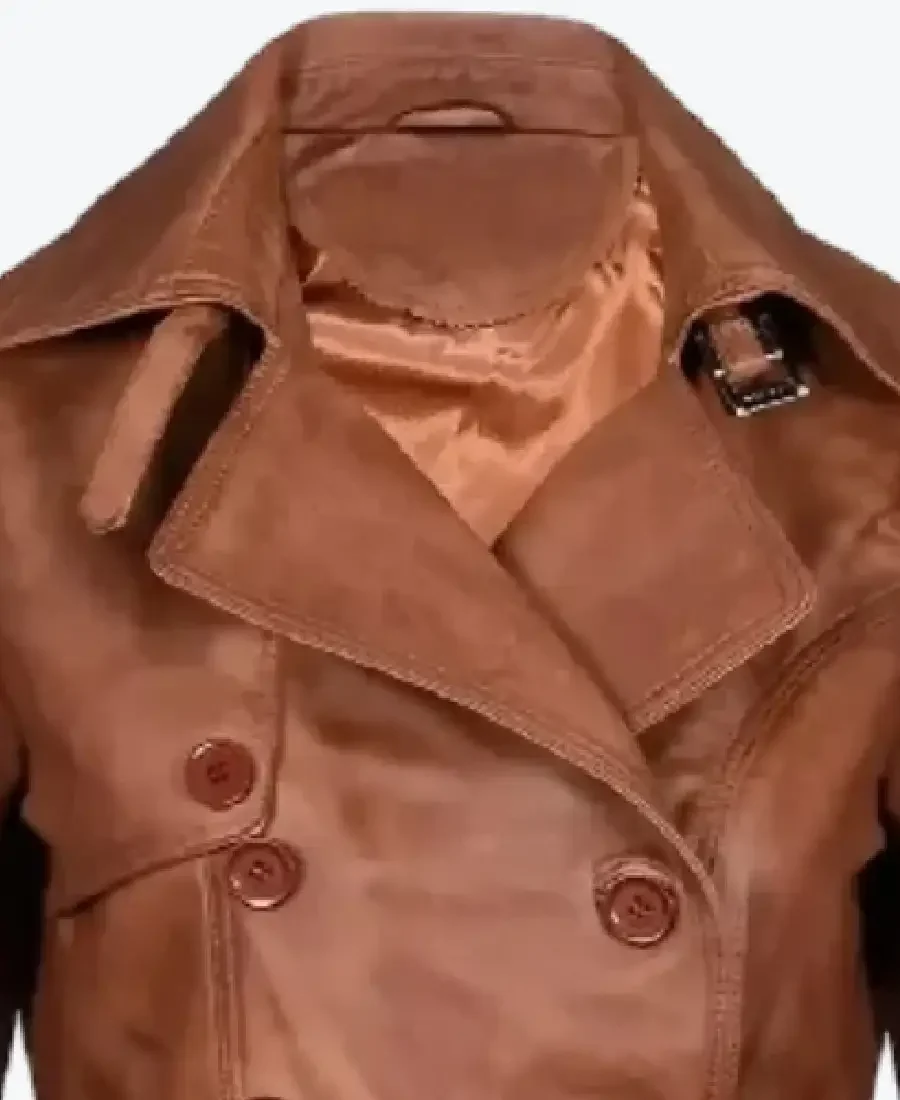 Women’s Double-Breasted Mid Length Brown Leather Coat