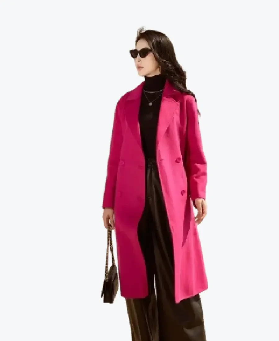 The Women’s Double Breasted Pink Long Coat by Rare Jackets is a masterclass in high-visibility urban design and precision luxury meticulously handcrafted from premium high-grade wool. Drenched in a commanding and vibrant fuchsia pink, this piece leverages a robust heavy-weight weave and natural thermal properties to provide a formidable protective shell against the winter chill. The wool is selected for its industrial-grade durability and a sophisticated soft-touch felted finish, ensuring the coat maintains a sharp authoritative frame while projecting a raw, high-fashion energy. Inside, the garment is fully integrated with a high-comfort lining, providing a breathable and friction-free experience for maximum all-day wear.
