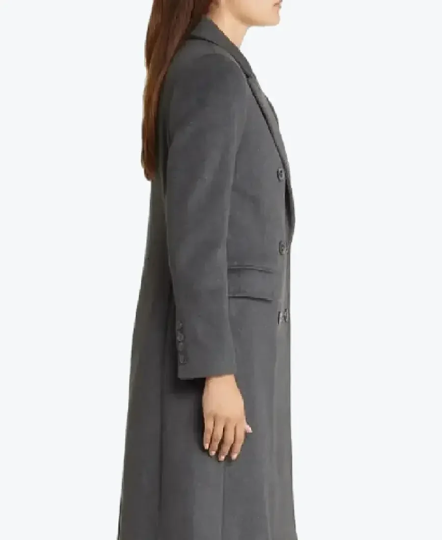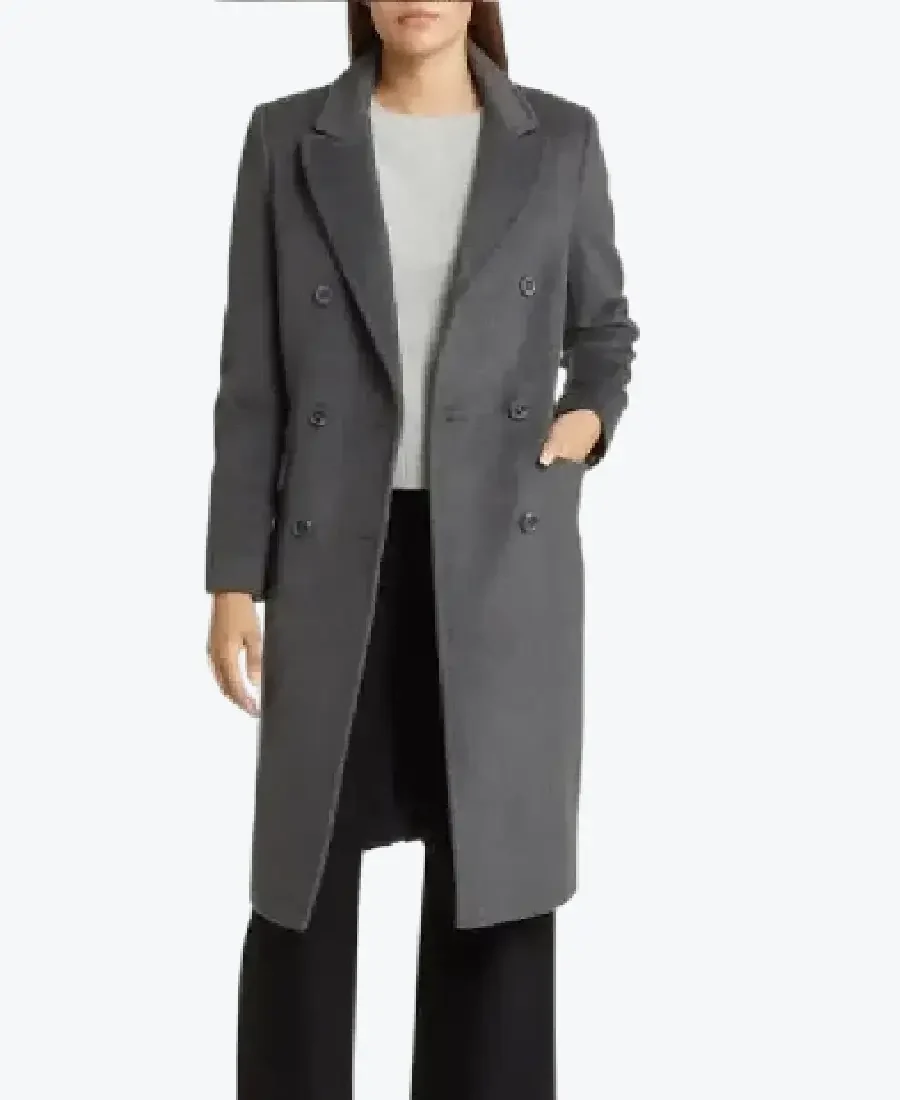 Womens Grey Double Breasted Wool Long Coat