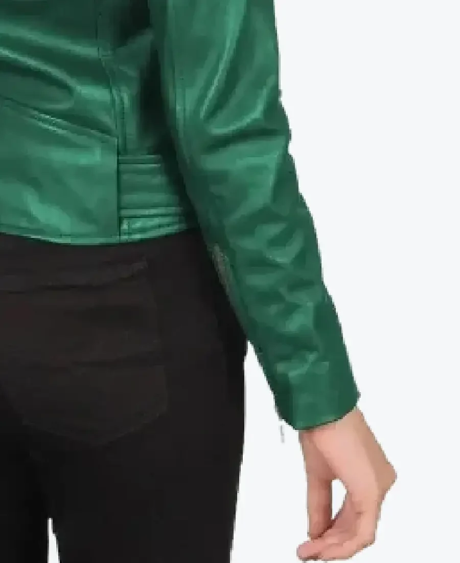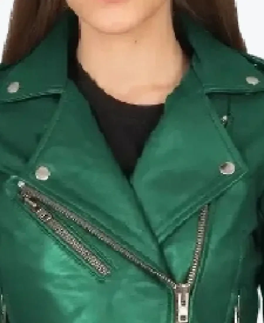 Women’s Lapel Style Green Leather Biker Jacket