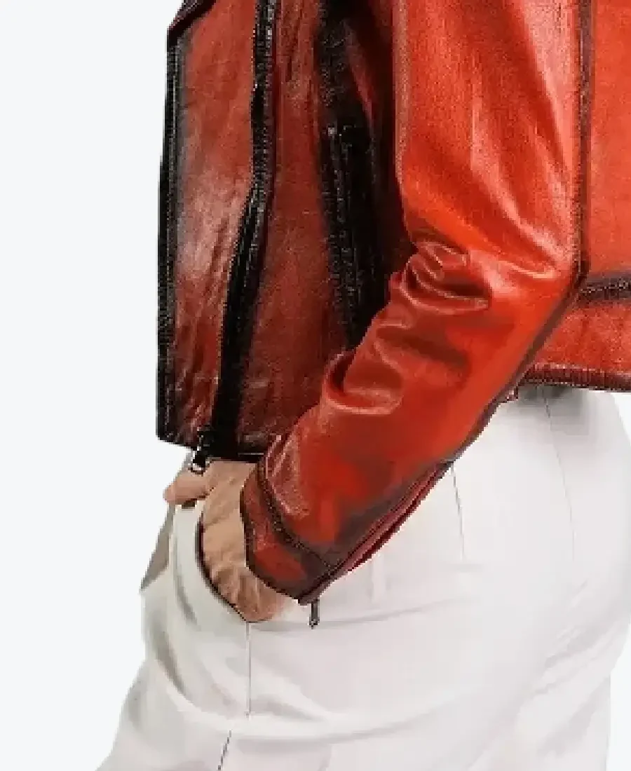Women’s Millie Orange Biker Leather Jacket