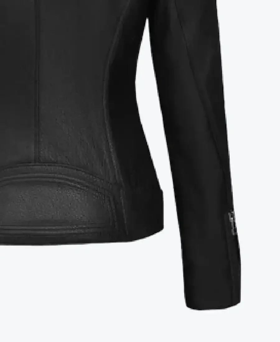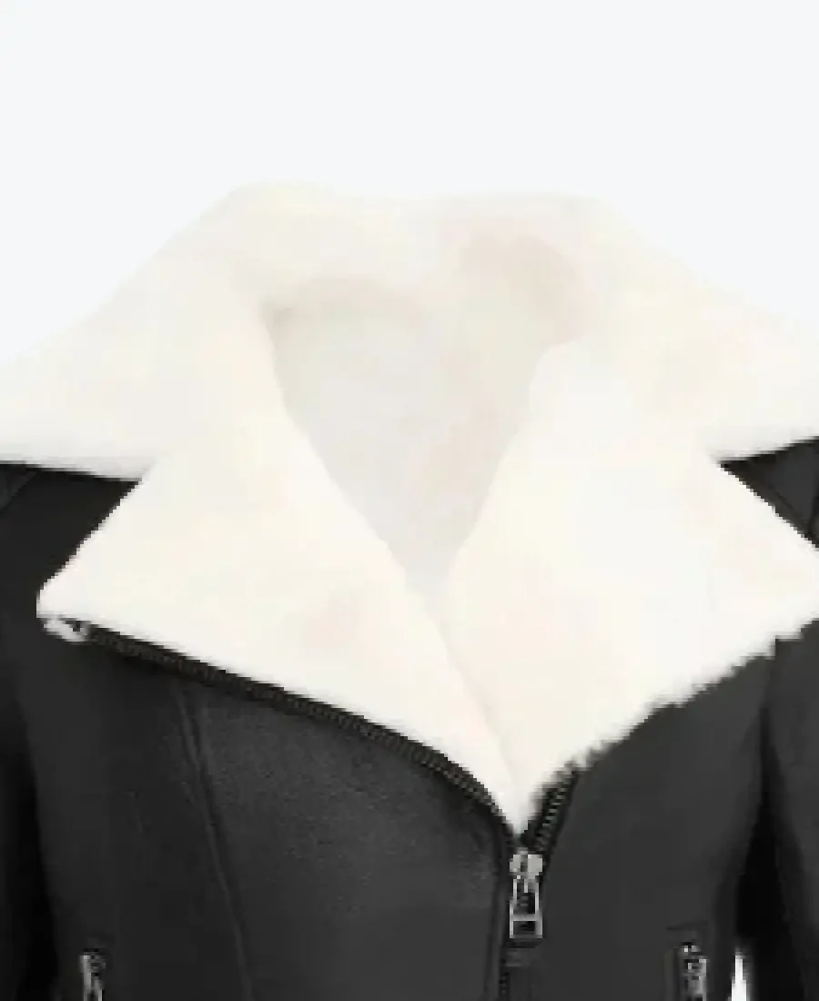 The architecture of this jacket is defined by its clean, aerodynamic lines and intricate horizontal ribbed quilting on the upper shoulders, lending a structured and powerful frame to the silhouette. It features a bold white fur-lined lapel collar, providing a textured and striking frame to the neckline that exudes a classic aviator-meets-high-fashion aesthetic. The front is anchored by a high-performance asymmetrical zipper closure, maintaining a precision slim-fit profile that highlights the jacket’s architectural tailoring. To ensure a custom fit and a tapered look at the wrists, the full-length sleeves are finished with high-performance zipper cuffs, complemented by a clean, paneled hemline. Designed for the individual who demands standout utility within a sophisticated frame, this Rare Jackets essential features a strategic three-pocket configuration, including two vertical side zip pockets and a hidden inner pocket, offering secure storage while reinforcing the jacket’s powerful, high-impact silhouette.