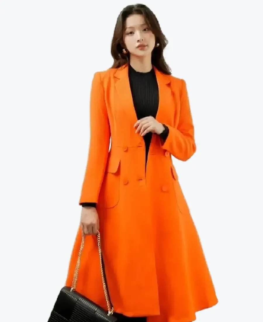Women’s Orange Long Woven Coat