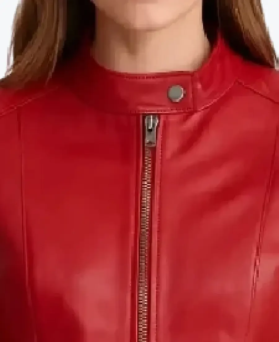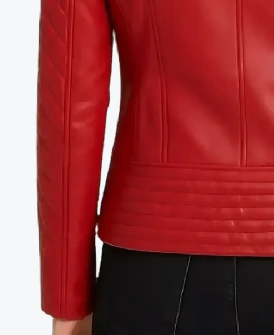 Shop The Rare Jackets Women’s Quilted Red Cafe Racer Leather Jacket