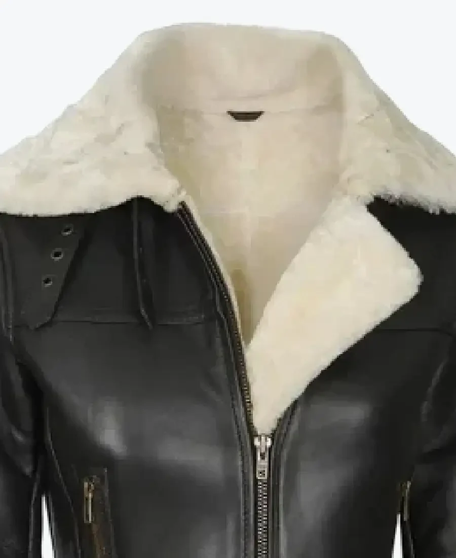 The Women’s Shearling Bomber Jacket by Rare Jackets is a masterclass in high-contrast thermal design and precision luxury meticulously handcrafted from premium cowhide leather or high-grade faux leather. Drenched in a commanding and timeless obsidian black, this piece leverages a robust high-grade grain and natural wind-resistant properties to provide a formidable protective shell. The hide is selected for its industrial-grade durability and a sophisticated semi-gloss finish, ensuring the jacket maintains a sharp authoritative frame while projecting a raw contemporary energy. Inside, the garment is fully integrated with a plush high-density snow white fur lining, providing unparalleled warmth and a high-comfort experience for freezing temperatures.