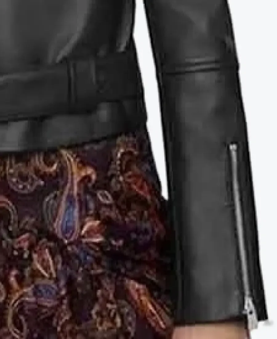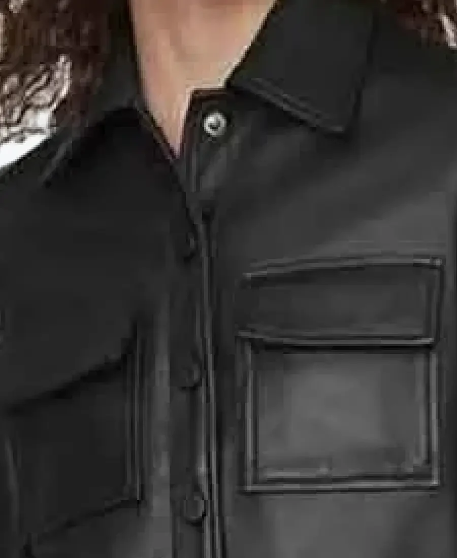 The architecture of this jacket is defined by its clean, ultra-slim silhouette and an iconic “military-shacket” aesthetic. It features a sharp shirt-style leather collar providing a structured and powerful frame to the neckline that exudes a classic professional vibe with a dramatic urban twist. The front is anchored by a high-impact vertical placket featuring precision tonal button hardware and is dramatically accented by an integrated leather waist belt with a reinforced silver-tone buckle, maintaining a precision tailored-fit profile that allows for an adjustable architectural cinch. To ensure a custom look and a streamlined drape at the extremities, the full-length sleeves are finished with clean open hem cuffs featuring functional silver-tone zippers, while the expert vertical paneling and reinforced hemline create a sophisticated architectural volume. Designed for the individual who demands maximum organized utility within a polished frame, this Rare Jackets essential features a strategic four-pocket configuration—including two external snap-button flap chest pockets and two discreet side-entry pockets—offering secure storage while reinforcing the jacket’s sleek, high-impact silhouette.