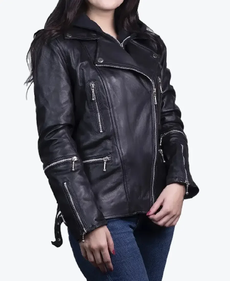 The Women’s Slim Fit Real Leather Hooded Jacket by Rare Jackets is a masterclass in urban versatility and high-performance layering, meticulously handcrafted from premium cowhide leather (also available in high-grade faux leather). Drenched in a commanding obsidian black, this piece leverages a robust grain and natural wind-resistant properties to provide a formidable protective shell. The hide is selected for its industrial-grade durability and supple hand-feel, ensuring the jacket maintains a sharp, authoritative frame while offering a modern, relaxed edge. Inside, the garment is fully lined with a silky viscose lining, providing a breathable and friction-free experience for maximum all-day comfort.
