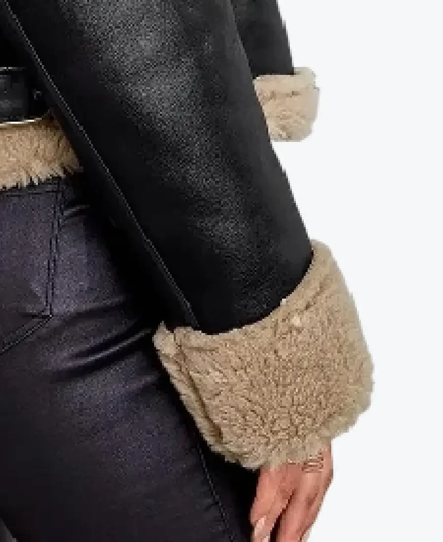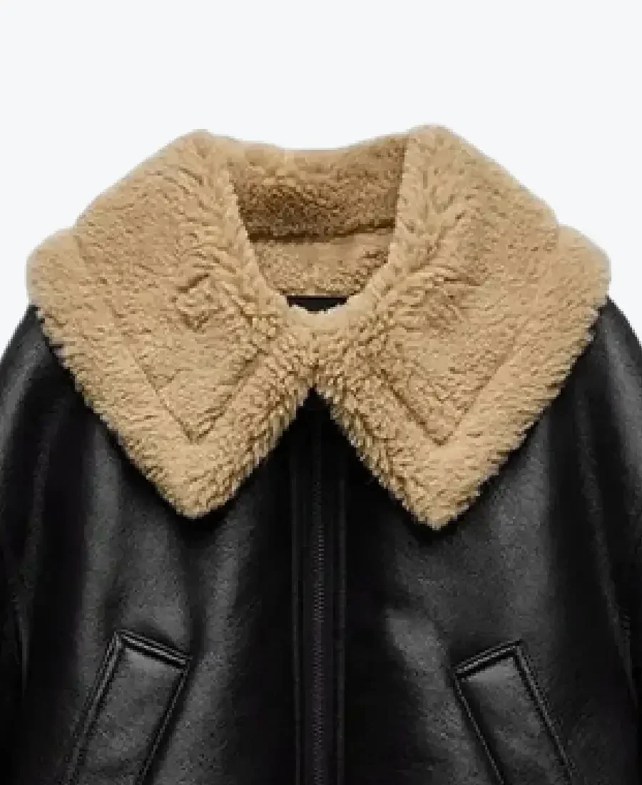 The architecture of this jacket is defined by its clean, oversized lines and iconic exposed Sherpa trim. It features a bold, oversized Sherpa-lined lapel collar in a warm honey-beige tone, providing a textured and powerful frame to the neckline that exudes a classic aviator-meets-high-fashion aesthetic. The front is anchored by a high-performance centered zipper closure, maintaining a precision relaxed-fit profile that allows for effortless layering. To ensure maximum style impact and a cozy feel at the extremities, the full-length sleeves are finished with thick Sherpa-trimmed cuffs, complemented by a matching Sherpa-trimmed hemline. Designed for the individual who demands maximum organized utility within a standout frame, this Rare Jackets essential features a strategic four-pocket configuration, including two angled side welt pockets and two hidden inner pockets, offering secure storage while reinforcing the jacket’s powerful, high-impact silhouette.