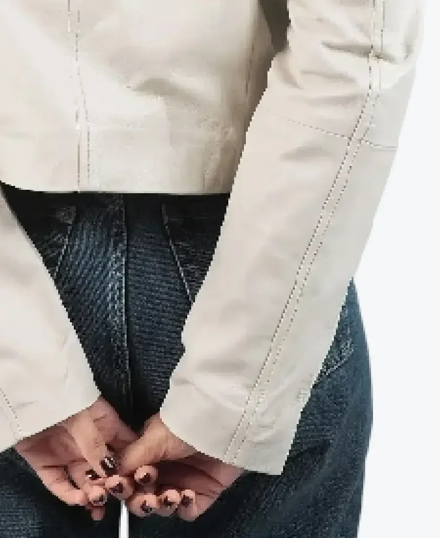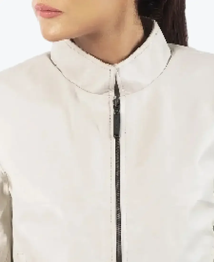 Women’s Standup White Leather Jacket
